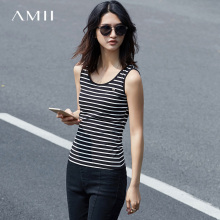 Amii 2017夏季百搭修身内搭吊带女士打底衫 条纹纯棉工字背心女式