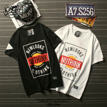 原创夏季日系潮牌短袖t恤原宿港仔风个性字母印花青少年圆领T恤