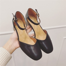 2017夏季新款韩版包头圆头搭扣粗跟中跟中空单鞋罗马女凉鞋女鞋子