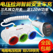 索浪带开关一拖三点烟器车载充电器汽车用双USB一分三多功能车充