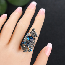 韩版复古戒指女时尚个性镶钻水晶蝴蝶宝石戒指食指女夸张潮人指环