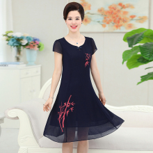 中老年女装夏装妈妈装连衣裙夏季雪纺40-50岁中长款中年妇女裙子