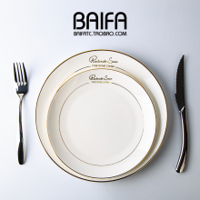 欧式金边唐山骨瓷西餐盘牛排盘浅式盘子酒店摆台餐具套装定制logo