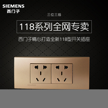 西门子开关插座家用墙壁面板三插十10孔5孔二三插118型香槟金