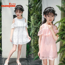 2017新款韩版女童连衣裙夏镂空露肩蕾丝儿童公主裙中大童背心裙子