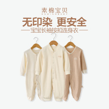 素棉宝贝新生儿婴儿连体衣春秋季衣服纯棉宝宝哈衣长袖开裆爬服