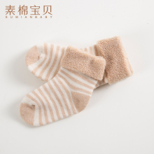 素棉宝贝 新生儿袜子天然彩棉婴儿加厚保暖袜子宝宝中筒袜毛圈袜
