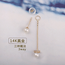 天然珍珠耳线14k珍珠耳钉韩国14k金耳环k金耳饰裴秀智同款八月里