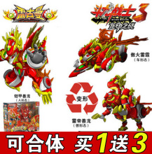 正版百变机兽洛洛历险记 武战道变形玩具 霹雳火龙卷风暴龙神全套