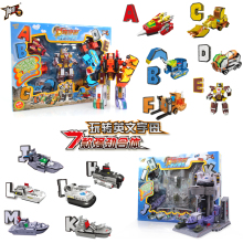 神奇士工程战队合体机器人变形英文字母A-M 儿童益智组装航母基地