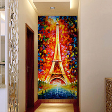 中式油画巴黎塔玄关墙纸 过道客厅餐厅背景墙壁纸墙布大型壁画