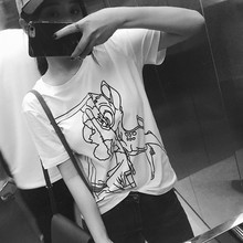 樱夫人2017夏新款纯棉白色t恤女短袖宽松圆领韩版百搭情侣t恤