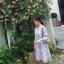 樱夫人 碎花连衣裙女夏2017新款韩版裙子V领淑女雪纺连衣裙中长款