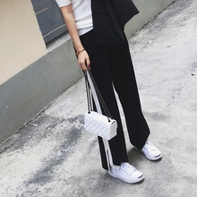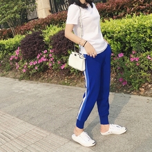 樱夫人白边校服裤女韩版冰丝针织宽松休闲裤运动裤女薄款九分裤夏