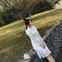 樱夫人 春夏新款荷叶边蝴蝶结韩版中长款碎花雪纺连衣裙女夏a字裙