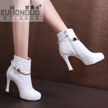 清仓特价不退换真皮粗跟短靴女防水台高跟鞋马丁靴单裸靴加绒皮靴
