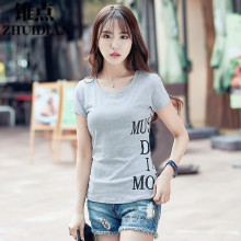 锥点2017春夏新品韩版字母印花宽松显瘦短袖t恤女百搭套头圆领女T