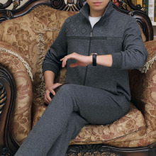 大码中老年开衫长袖运动服套装男士大码休闲运动卫衣中年男运动服