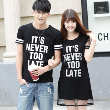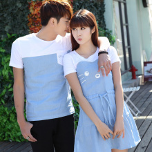 情侣装夏装 2017新款韩版夏季韩范短袖T恤衫大码女装连衣裙班服潮