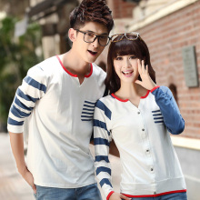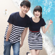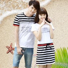 情侣装夏装 2017新款恩尚上衣韩版夏季短袖T恤女装条纹连衣裙大码