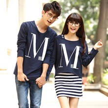 情侣装春装 2017新款秋冬装韩版两件套长袖T恤大码女连衣裙学生