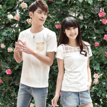 情侣装夏装2017新款韩版纱网短袖T恤衫夏季大码女装雪纺上衣班服