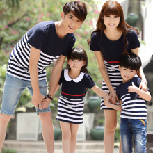 亲子装夏装2017新款韩版圆领母子女裙一家三口装家庭装短袖t恤衫