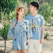 情愫2017新款度假情侣装夏装结婚照夏季短袖t恤衫复古韩范连衣裙