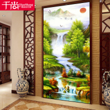 新款玄关竖版钻石画方钻满钻旭日东升粘贴钻十字绣走廊过道山水画
