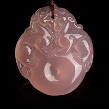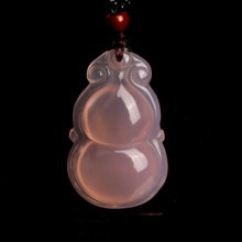 天然粉玉髓葫芦吊坠女款玛瑙项链粉水晶项坠项链男女款 带证书