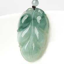 翡翠a货玉叶子吊坠玉坠男女款项链玉牌玉石挂件冰糯种飘花