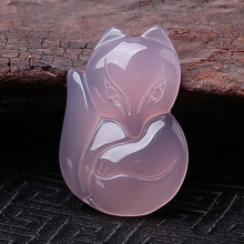 开光饰品天然粉玉髓狐狸吊坠女姻缘桃花旺狐仙防小三项链水晶挂坠