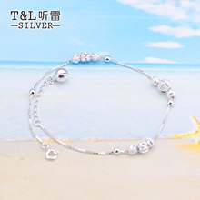 新款925转运珠银脚链 女韩版脚链简约时尚饰品铃铛民族风日韩新款
