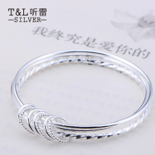 新款推拉实心简约光面银手镯光板圆条999足银手镯纯银手工镯子女