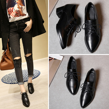 2017春季新款英伦风深口单鞋女平底系带真皮鞋子尖头休闲百搭女鞋