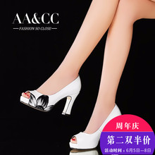 AA&CC高跟鞋子女秋季新款百搭鱼嘴单鞋高跟鞋 粗跟防水台浅口女鞋