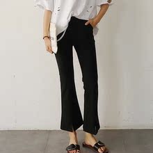 2017春秋新款韩版罗马前开叉喇叭裤显瘦铅笔九分裤女高腰阔腿裤
