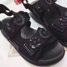 伊风行凉鞋女夏2017新款韩版厚底松糕沙滩鞋手工串珠亮片休闲女鞋