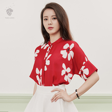 范思蓝恩印花衬衫女韩范雪纺上衣女夏装宽松蝙蝠袖雪纺衫短袖衬衣