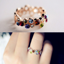 韩版时尚饰品 七彩超精致彩钻 戒指 指环 戒子手饰 送礼盒 女