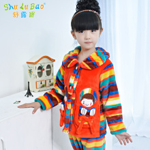 舒露宝 儿童睡衣 女童法兰绒加厚棉袄套装宝宝珊瑚绒夹棉家居服冬
