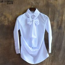美男唯美演出不对称男士格子长袖衬衫 围巾装饰修身韩版白衬衣男