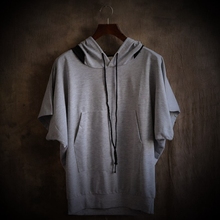 套头连帽蝙蝠袖个性男薄款时尚卫衣 韩版宽松大码蝙蝠衫男帽衫潮