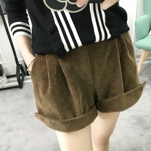 2017春季新款脚口开叉显瘦短裤时尚休闲松紧腰灯芯绒阔腿短裤女