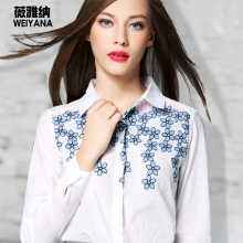 薇雅纳2016年新款 长袖重工绣花棉衬衣女装