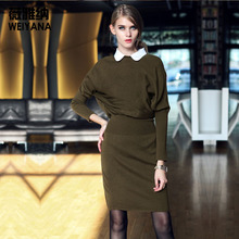 薇雅纳2016新款 时尚潮流一衣两穿可拆卸领毛衣连衣裙