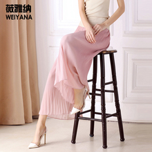 薇雅纳 夏季新品优雅时尚松紧腰雪纺压褶裙裤女