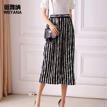 薇雅纳2016 时尚休闲百搭 七分条纹松紧腰阔腿裤女