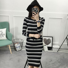 春装套装女时尚春季新款潮针织包臀裙子气质2017两件套毛衣套装裙
