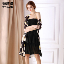 薇雅纳2016年夏季新款 时尚性感雪纺印花中长款防晒衫女